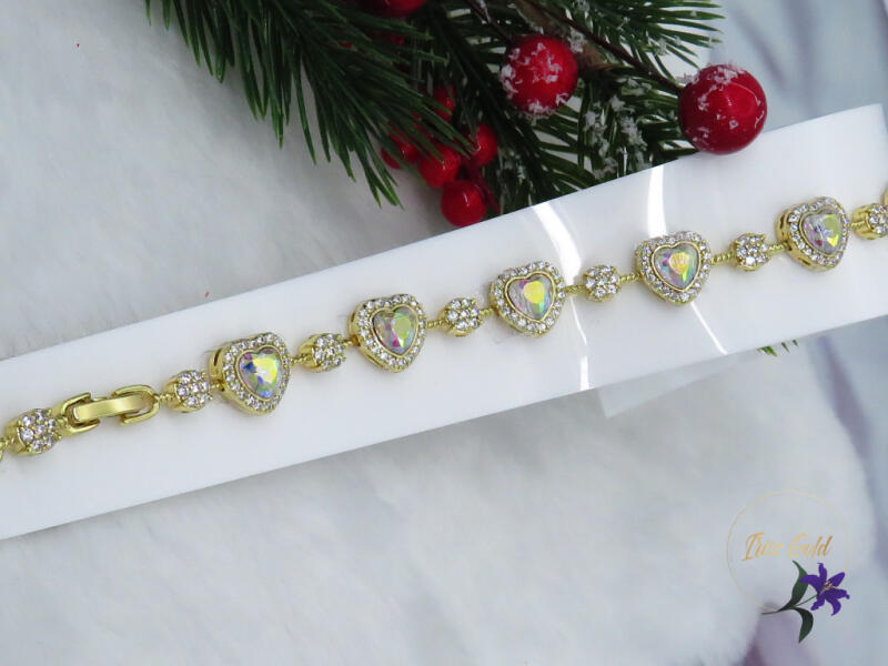 Gold Filled JingJing premium kategóriás Swarovski köves karkötő. Gondosan csiszolt színváltós kövek szinte elvarázsolnak Szin: 14K Méret: 18cm+ 2cm rel bővíthető Szélessége : 10mm Kövek fóliázottak! Fotózva is így lett ! A forgalmazott divatékszerek alapanyaga nikkel és ólommentes ezért többnyire nem okoznak allergiás tüneteket, nyugodtan hordhatják fémérzékeny embe