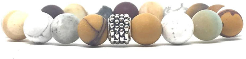 Egyedi ásvány karkötő A 8mm-es Mokait, Amazonit és Howlit ásvány golyókból készült karkötő speciális gumis damilra van fűzve, fém köztes díszítéssel. Amit a Howlit ásványról tudni kell: A howlitot Henry How-ról, egy 19-ik századi ásványkutatóról nevezték el, aki elsőkét talált rá erre a sokoldalú kőre. A howlit festetlenül matt fehér, vagy elefántcsont-szín