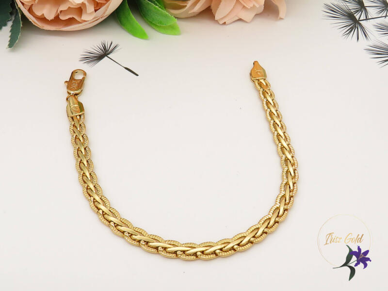 Gold Filled duplafonású karkötő Szin: 18K Méret: 19cm/6mm Zár: delfinkapocs A forgalmazott divatékszerek alapanyaga nikkel és ólommentes ezért többnyire nem okoznak allergiás tüneteket, nyugodtan hordhatják fémérzékeny emberek is. Általában nem színezik a bőrt és más divatékszerekhez képest nagyságrendekkel jobb kopásállósággal rendelkeznek. A fehér (ezüst) színű