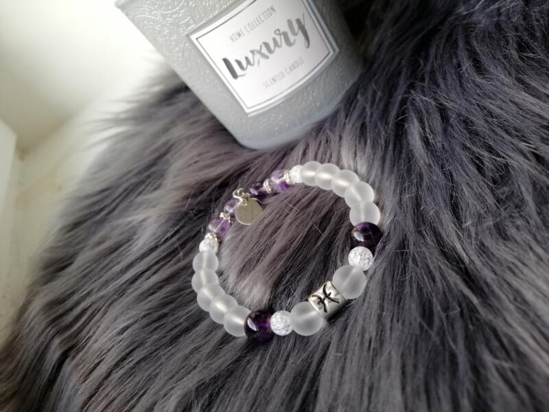 Yvonne Design horoszkópos ásványkarkötő a halak ásványaiból készítve: ametiszt, hematit és hegyikristály ásványból készítve a halak csillagjegy jelképével. A halak jegy jellemzése: Alapvetően emocionális, ösztönösen beleérző, megérző és szétáradó. A vízhez hasonlóan mindent visszatükröz és úgy alakul, ahogyan a víz felveszi a tartály alakját. Lelkében hat