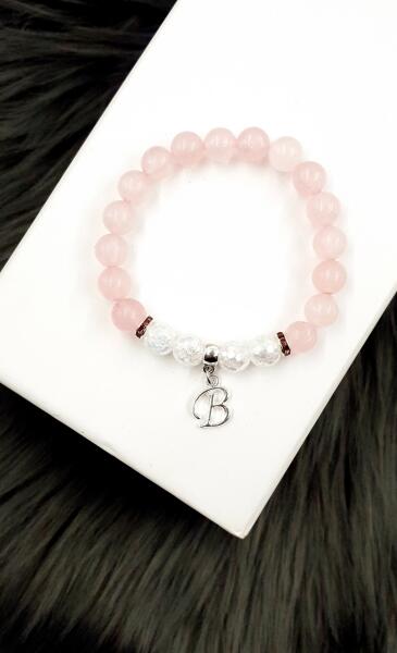 Álomszép, egyedi tervezésű 8 mm-es rózsakvarc és hegyikristály ásványokból készült karkötő. A betű szabadon megválasztható hozzá a termékvásárlás során. És kitudod választani a strasszos díszítőelem színét is: lila, fehér és rózsaszín. Más színben és más ásványokból is eltudjuk készíteniebben az esetben, vedd fel velünk a kapcsolatot, vagy töltsd ki, az