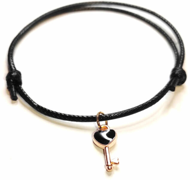 Fekete zsinórszövet karkötő fekete tűzzománc kulcs charmmal Paraméterek:. Charm mérete kb. 1,5 cm. Charm anyaga fémötvözet. Karkötő anyaga textil.