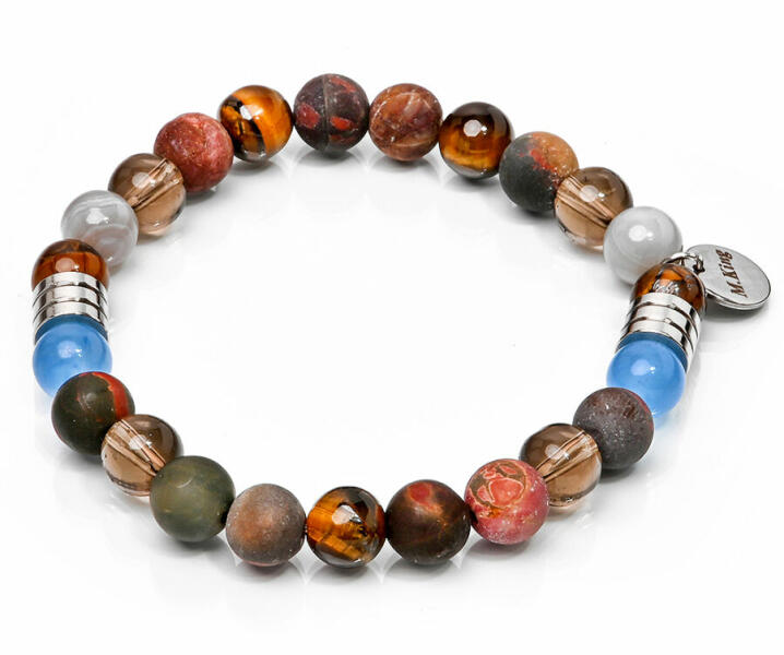Jáspis ásvány karkötő. Az ásvány golyók gumira vannak felfűzve. Amit a jáspisról érdemes tudnod: Gyakori előfordulása és a földszínek széles skálája miatt a jáspist ősidők óta használják dísztárgyak és pecsétek készítésére. Mágikus ereje miatt is nagyra értékelték. Úgy hitték, hogy túlvilági szellemi cselszövések ellen véd és a szerelmi bánatot mérs