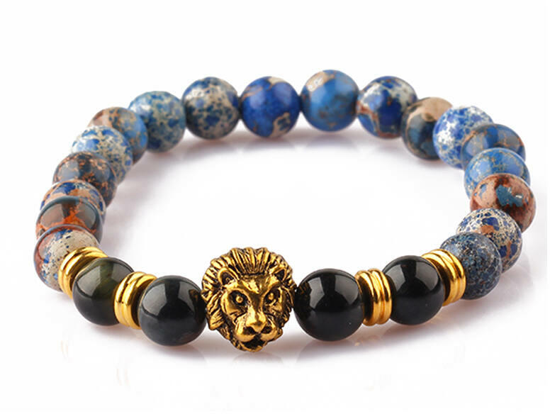 Rugalmas szára fűzött, kék jáspis - achát ásvány karkötő, arany színű oroszlánnal Gyöngy mérete: 8mm Ás vány típusa: Jáspis, achát Amit a jáspisról tudnod érdemes: Gyógyh atás: A jáspisról szintén megállapítható, hogy jóformán minden területen egyaránt alkalmazhatjuk. A felhasználást illetően a választás fő szempontja a kő színe, amelyet a megfelelő csak