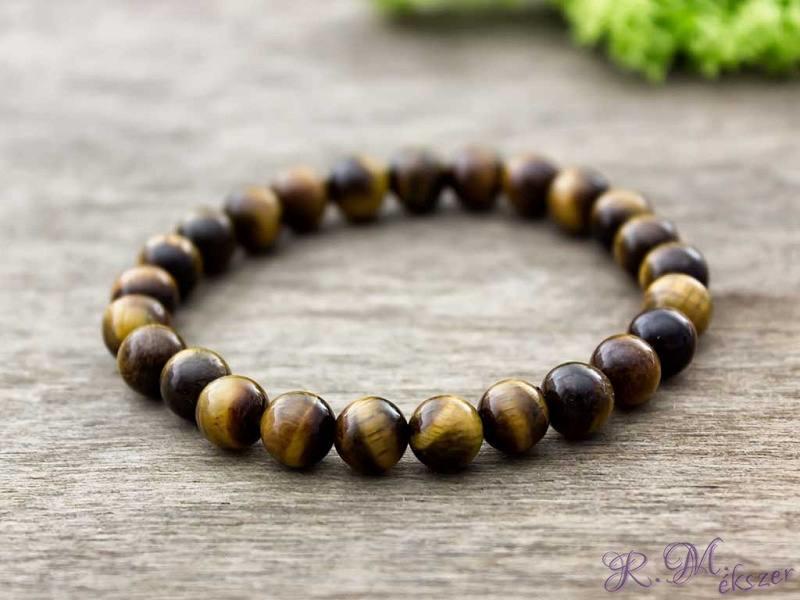 Az ásvány golyók gumira vannak felfűzve. Amit a tigrisszemről érdemes tudnod: Nézzen a fenséges tigris szemébe! Ez a lenyűgöző arany-sárga színű mélyen csíkozott ásványt, ha közelebbről vizsgáljuk, akkor szinte hipnotikus hatással van ránk hullámzó szépségével, pont mint egy igazi tigrisszemnek! Lelki gyógyhatása: Az ásvány nevében minden benne van, amit spirituá