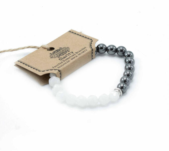 A fazettás drágakő karkötő - mágnes / hegyi kristály egy lenyűgöző ékszerdarab, amely garantáltan elvarázsolja viselőjét. Az exkluzív dizájn és a minőségi alapanyagok ötvözete miatt ez a karkötő minden alkalomra tökéletes választás. A karkötő dísze a fazettázott drágakők, amelyek ragyogást és eleganciát kölcsönöznek a darabnak. A hegyi kristályok varázslat