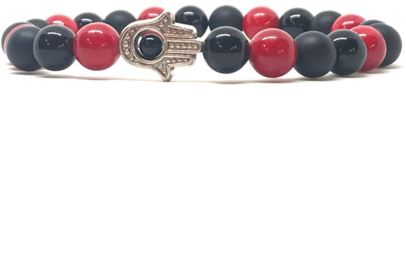Egyedi ásvány karkötő Hamsa-védelmező kéz dísszel A 8mm-es Ónix és piros Jáde ásvány golyókbók készült karkötők speciális gumis damilra vannak fűzve, Hamsa kéz köztes díszítéssel. Amit a Jádéról tudni kell: A Jáde egy gyűjtőcsoportja a kövek egy fajtájának. A Jáde ásvány testi lelki hatásai: Több örömmel és életkedvvel ajándékoz meg minket. Növeli a b