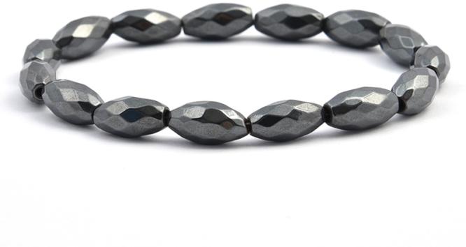 A karkötő 5x8 mm-es fazettál hematit rizsszemből készült, gyöngyfűző gumira fűzve. A karkötő méretének meghatározása : a csuklód méretéhez adj hozzá 1,5 cm-t. KÉRLEK VÁLASSZ MÉRETET ! Az ásványok nem helyettesítik az orvosi diagnózist és kezelést. A hematit hatása : a hematit segítségével jobb és egészségesebb bőrszínt érhetsz el. Segíti a szervezet regener
