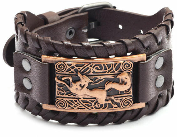 Rókamotívumos széles bőr karkötő, állítható méret. Hangsúlyos, vagány karkötő, mérete állítható. Anyaga bőr és fémötvözet. Szélessége 4 cm, hossza 27,5 cm.