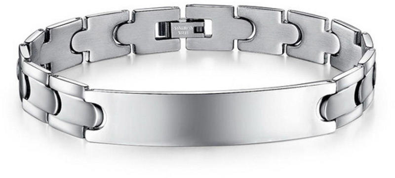 Férfias megjelenés, határozott vonalvezetés. Gravírozhtaó felület! Ékszer alapanyaga: 316L nemesacél Karkötő mérete: 21cm