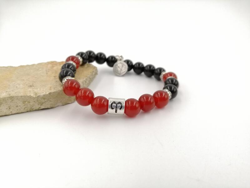 Yvonne Design horoszkópos ásványkarkötő a bak ásványaiból készítve: rodonit, jáspis ásványokból és a kos csillagjegy jelképével. A kos jegy jellemzése:Fejjel megy a falnak, vagyis mindig célratörő, mert kimeríthetetlen energiák szunnyadnak benne. Csak a jövő érdekli, sohasem tekint vissza, igazi vezér típus, aki tömegeket képes maga mellé állítani céljai érdekéb