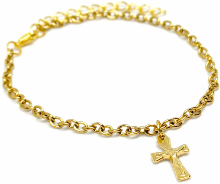 Nemesac l kereszt (feszület) charmos karkötő. Karkötő mérete 17+5 cm. (Ha ettől eltérő méretet szeretnél, rendeléskor a MEGJEGYZÉSBE írd be. ) Paraméterek: Charm mérete 1,6 cm. Anyaga nemesacél, karkötő anyaga rozsdamentes acél. Karkötő szélessége 3 mm.