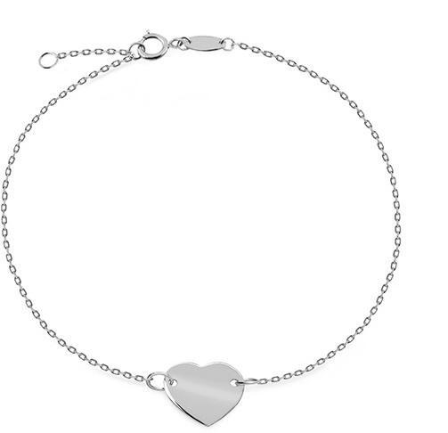 A karkötő fehér aranyból készült, finom láncból áll, szív alakú medállal.
