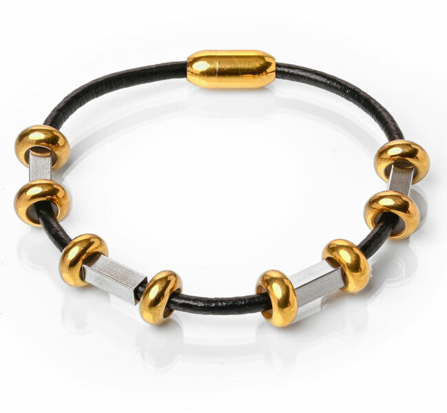 Mágnes záras bőr karkötő nemesacél díszekkel. Karkötő bőr, méretét válaszd ki a listából vagy írd be megjegyzésbe. A Maria King Bőr és nemesacél karkötő egy igazán elegáns és stílusos kiegészítő. A bőr lánc erős bőrből készült, ami nagyon kellemes érintést biztosít a viselése során. A nemesacélból készült részek pedig egyedi dizájnt adnak a terméknek