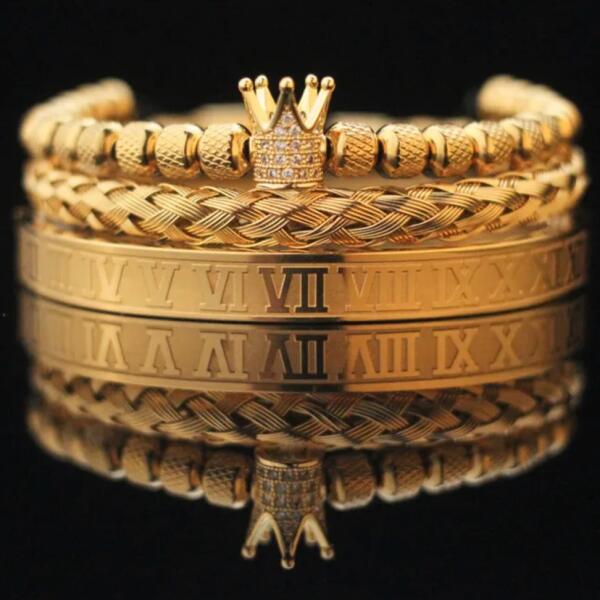 Jadrin karkötők A Jadrin karkötők királyi megjelenést és luxust adnak a megjelenéséhez. Ez a háromrészes szett tartalmaz egy hangsúlyos római számokkal díszített karkötőt, egy elegáns fonott karkötőt, egy díszes gyöngyökből álló és királyi koronával díszített karkötőt. Minden karkötő az eleganciát és az erőt képviseli, akár önállóan, akár szettben visel