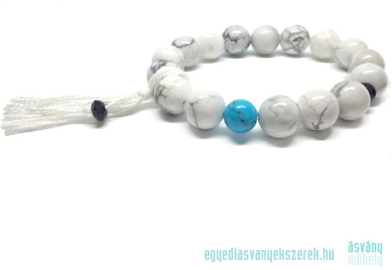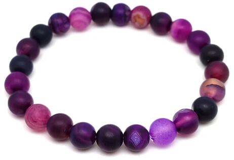 Achát karkötő (golyó szinezett sáv matt lila Kína Karkötő ásvány)Az ásvány golyók gumira vannak felfűzve. Az ásványok színbeli aránya eltérhet a képen láthatótól. Amit az achátról érdemes tudnod: Az achát minden színben fellelhető, többnyire szürke, kékesszürke, zöldesszürke, szürkésfehér, barna csíkozással, áttetsző. Lelki gyógyhatás: Az achát lelki gy