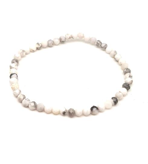 Howlit karkötő (golyó fazettált Kína Karkötő ásvány) Az ásvány golyók gumira vannak felfűzve. Amit a howlitról érdemes tudnod: A howlitot Henry How-ról, egy 19-ik századi ásványkutatóról nevezték el, aki elsőkét talált rá erre a sokoldalú kőre. A howlit festetlenül matt fehér, vagy elefántcsont-színű, barnás-feketés-márványos erezettel. Lelki gyógyhatás: A ho