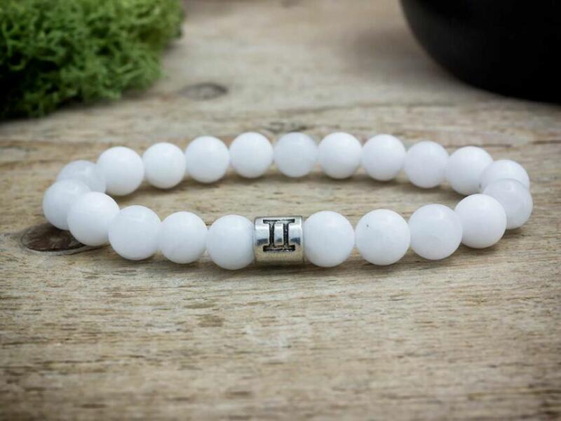 Ezt a karkötőt kifejezetten az ikrek jegy (05.21. - 06.21. ) szülötteinek terveztük, készítettük. A karkötő tejkvarc 8 mm-es ásvány gyöngyökből és egy fém köztes elemből áll. Az ásvány golyók gumira vannak felfűzve, így kényelmes a hordása. Ikrek (05.21. - 06.21. ) horoszkóp jellemzése: E jegy szülöttje nyugtalan, mozgékony, gyors észjárású, és jó felfogókép