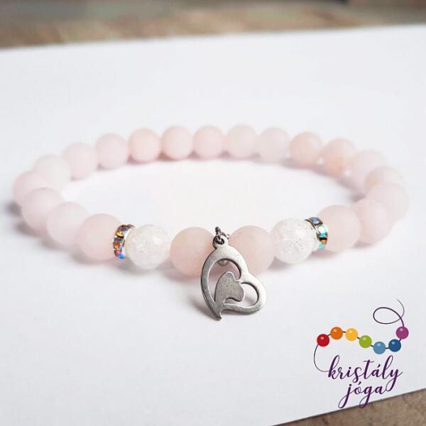 A rózsakvarc, és hegykristály 8 mm-es ásvány gyöngyök gumira vannak felfűzve. A karkötőt bizsu fém kötes is díszíti. Amit a rózsakvarc ról érdemes tudnod: A festetlen rózsakvarc az egész világos, szinte áttetszőtől, a ködös középrózsaszínig terjed. Az egyik legnépszerűbb kövek egyike, amely szépséges küllemének és erős gyógyhatásának köszönhető. Történ