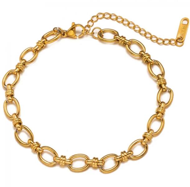 Daria karkötő Elegáns karkötő kidolgozott ovális láncszemekkel, amely ideális kiegészítő olyan nők számára, akik a kifinomult és stílusos megjelenésre vágynak. Minden láncszemet különleges, finoman kidolgozott elemek kötnek össze, amelyek a ékszernek luxust és egyedi megjelenést kölcsönöznek. Időtlen dizájnja garantálja, hogy ez a darab tökéletes társ lesz a mind