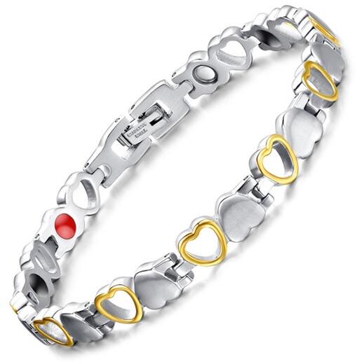 egészségre jótékony hatásairól ismert mágneses nemesacél karlánc karlánc 20,5 cm hosszú 7 mm széles nemesacél időtálló ékszer 3 db mágnessel, 2 db germániummal, 3 db infra szemmel és 3 db negatív ionnal rendelkezik