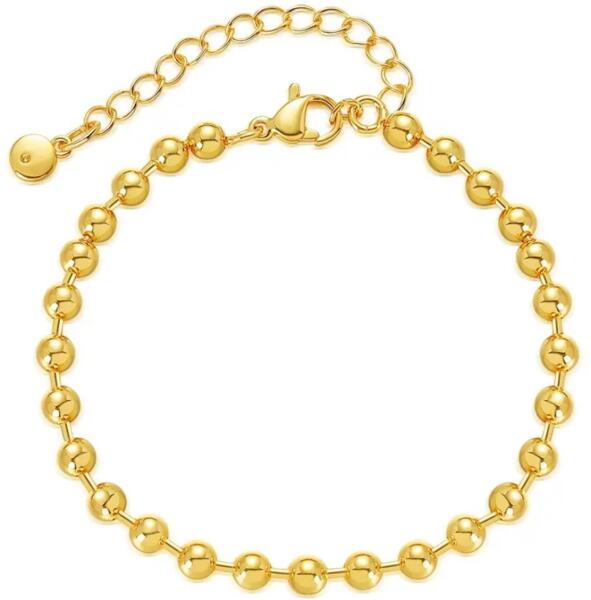 Ball Bead karkötő A gyönyörű Ball Bead karkötő a letisztult elegancia tökéletes megnyilvánulása. Klasszikus dizájnja, amelyben az arany golyók finoman összefonódnak, időtlen ékszert alkot, amely könnyedén kiegészít bármilyen öltözetet. A lánccal állítható hosszúságnak köszönhetően a saját kényelme szerint alakíthatja a méretét, miközben biztonságosan és sta