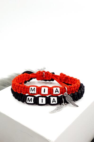 Teljesen egyedi, szabadon választható névvel ellátott karkötő, mely vékony parakord zsinórból font és fehélr betűket tartalmaz. A neveket, amit a karkötőn szeretnél látni, a vásárlás végén a megjegyzés rovatban add meg nekünk, ami max 7 karakterből állhat. Az ár egy pár (2db) karkötőre vonatkozik, illetve a védelmező angyalszárny medálokat is tartalmazza