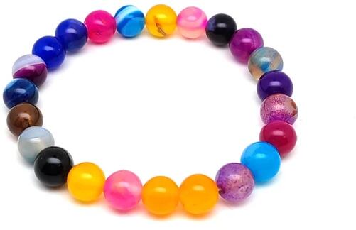 Achát vegyes karkötő (golyó szinezett sáv Kína Karkötő ásvány)Az ásvány golyók gumira vannak felfűzve. Az ásványok színbeli aránya eltérhet a képen láthatótól. Amit az achátról érdemes tudnod: Az achát minden színben fellelhető, többnyire szürke, kékesszürke, zöldesszürke, szürkésfehér, barna csíkozással, áttetsző. Lelki gyógyhatás: Az achát lelki gyóg
