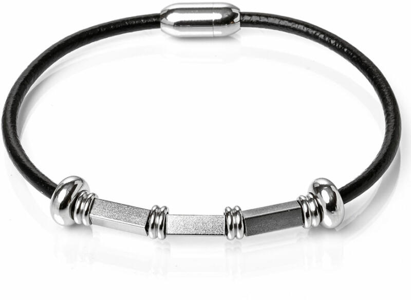 Mágnes záras bőr karkötő nemesacél díszekkel. Karkötő bőr, méretét válaszd ki a listából vagy írd be megjegyzésbe. A Maria King Bőr és nemesacél karkötő egy igazán elegáns és stílusos kiegészítő. A bőr lánc erős bőrből készült, ami nagyon kellemes érintést biztosít a viselése során. A nemesacélból készült részek pedig egyedi dizájnt adnak a terméknek