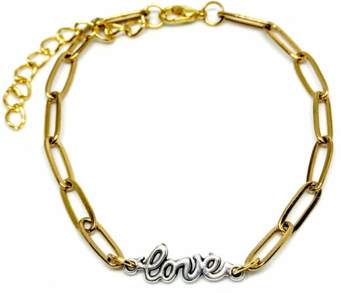 Love felirat charmos karkötő, 1 charmmal. Paramé terek: Charm mérete kb. 1,5 cm. Anyaga fémötvözet, karkötő anyaga rozsdamentes acél. Karkötő mérete 17+5 cm. (Ha ettől eltérő méretet szeretnél, rendeléskor a MEGJEGYZÉSBE írd be. ) A legfontosabb dolog a világon a végtelen szeretet, hiába űzzük az anyagi javakat egész nap, ha szeretet nincs, semmi nincs.