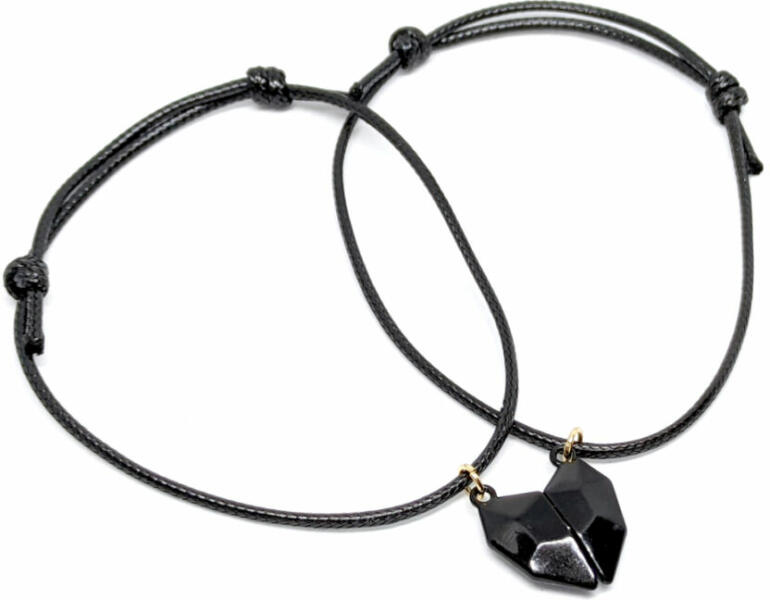 Mágnese s Szív charmos páros karkötő. A két szív fél összekapcsolódik mágnessel, nagyon menő :-). Paraméte rek: Szív teljes mérete 1,8x2 cm. Anyaga fémötvözet, karkötők anyaga szövet. Karkötők mérete állítható, mindenkire jó.