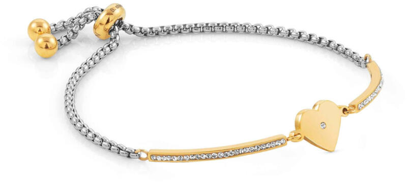 Nomination Milleluci női karkötő típusa 028006-022. Rozsdamentes acél állítható karkötők arany PVD színű bevonattal, fehér cirkóniával és szív szimbólummal. Hossza: 19 cm, 14 cm-re rövidül. Szimbólum mérete: 1 x 1 cm. Ez a karkötő tökéletes Valentin-napi ajándék.