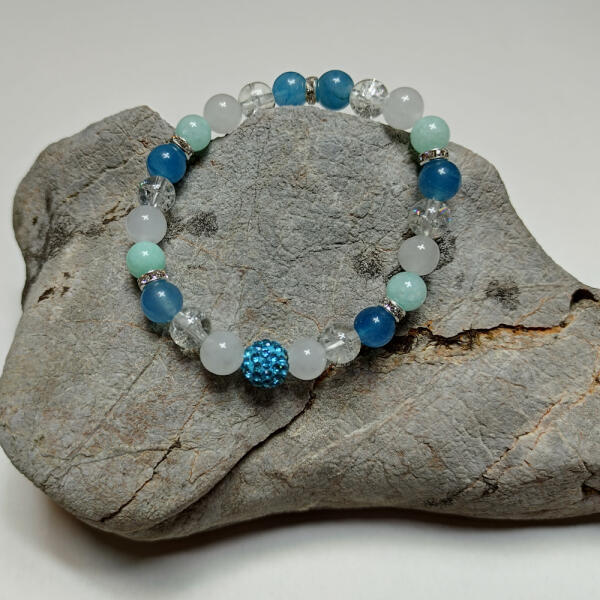 Achát és türkinit ásványokból fűzött gumis karkötő. Nikkelmentes ékszer. Egyedi tervezés alapján készült kézműves ékszer. Amennyiben egyéni kérésed van, vagy nem találod, amit szeretnél, keress engem bátran. Figyelem! Az ásványokat, kristályokat az őskor óta használják a test, a lélek és az érzelmek harmonizálására. Az ókori kultúrákban kifejezetten elterjed
