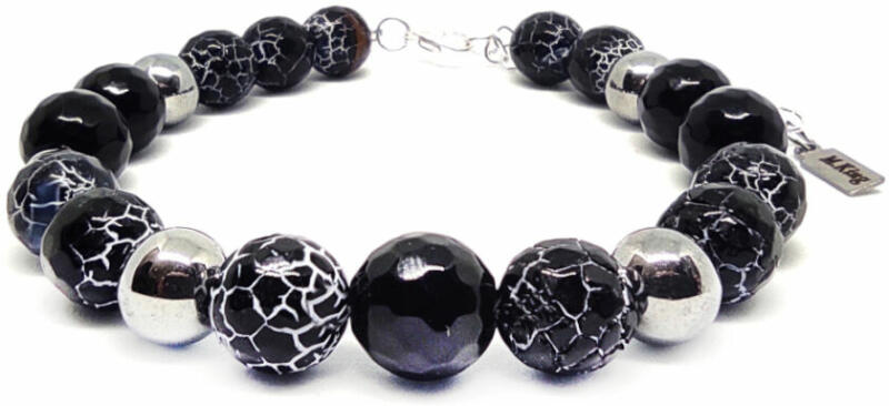 Figyelem! Nem szakad, nem nyúlik! Tartós ékszer. Kérheted csat nélküli rugalmas gumidamilra is. Amennyiben rugalmas damilra kéred, Megjegyzésbe írd be rendeléskor, hogy csat helyett rugalmas gumidamilt kérsz, és a csuklód körbemért méretét is írd meg. Az ékszer ásványai és tartozékai: – 10 mm-es fazettált fekete Tűz Achát – 8 mm-es ezüst hematit ásványok – 10