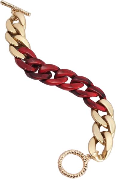Cadena Karkötő Cadena karkötő verhetetlen áron. Az ékszer nem tartalmaz nikkelt, ezért érzékeny bőrű emberek is viselhetik. Tulajdonságok: A karkötő hossza: 15cm Anyaga: Műanyag, Fém és cink ötvözete Szín: Arany/Piros