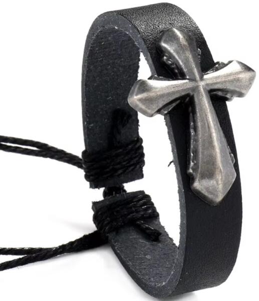 Strong karkötő - Cross Ez a stílusos karkötő a kifejező fémkereszttel a hitének és eltökéltségének tökéletes kifejeződése. A karkötő közepén található robusztus fémkereszt hangsúlyos megjelenést kölcsönöz, míg a bőr szíj kényelmet és tartósságot biztosít. Ez a karkötő ideális a mindennapi viselethez, legyen szó akár lelki utazás szimbólumáról vagy egy
