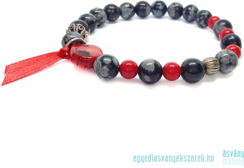 Obszidián ásványgolyókból fűzött gumis karkötő. Amit az obszidiánról érdemes tudnod: Az obszidián vulkánüveg, a föld mélyében készült. Sok színben és árnyalatban létezik, de a fekete a leginkább kedvelt és használt. A szivárvány-obszidián a legértékesebb, amely a szivárvány minden színében játszik, és az ún. apacskönny, amelyet Arizonában bányásznak. Mind
