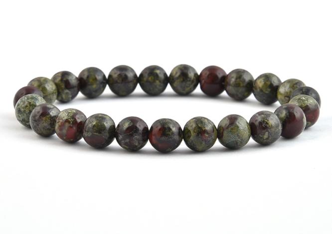 A zöld és vörös színű sárkányvér 8 mm-es ásvány gömbjeiből, gyöngyfűző gumira fűzött karkötő. karkötő méretének meghatározása : a csuklód pontos méretéhez adj hozzá 1,5 cm-t. KÉRLEK VÁLASSZ MÉRETET !A sárkányvér hatása : a hagyomány szerint, ha valaki vagy valami rossz energiákkal közeledik, feléd a kő meleget kezd árasztani magából, mintha a sárkány