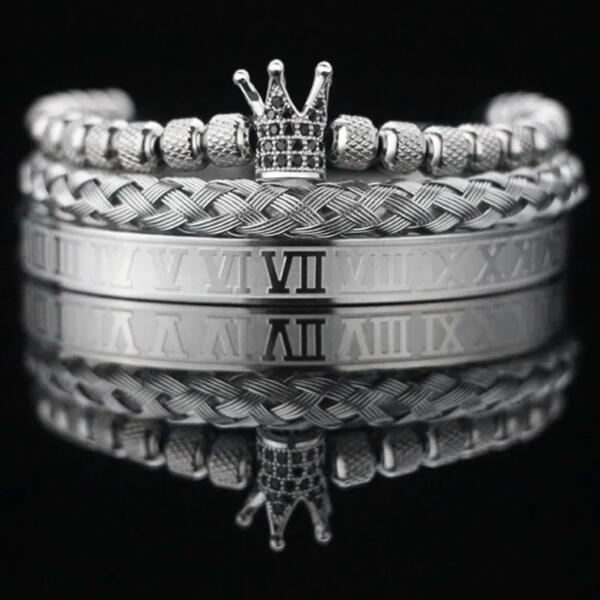 Jadrin karkötők A Jadrin karkötők királyi megjelenést és luxust adnak a megjelenéséhez. Ez a háromrészes szett tartalmaz egy hangsúlyos római számokkal díszített karkötőt, egy elegáns fonott karkötőt, egy díszes gyöngyökből álló és királyi koronával díszített karkötőt. Minden karkötő az eleganciát és az erőt képviseli, akár önállóan, akár szettben visel