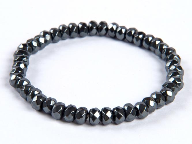 A karkötő 6x4 mm-es hematit korong felhasználásával készült, gumira fűzve. A karkötő méretének meghatározása : a csuklód méretéhez adj hozzá kb. 1,5 cm-t. Az ásványok nem helyettesítik az orvosi diagnózist és kezelést. A hematit csiszolatlan állapotban vörös vagy sötétszürke. Az ékszergyártásban használják, és a vaskohászatban magas vastartalma ( 60-70 % ) miat