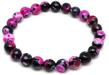 Achát tűz karkötő (golyó szinezett fazettált fekete lila Kína Karkötő ásvány)Az ásvány golyók gumira vannak felfűzve. Az ásványok színbeli aránya eltérhet a képen láthatótól. Amit az achátról érdemes tudnod: Az achát minden színben fellelhető, többnyire szürke, kékesszürke, zöldesszürke, szürkésfehér, barna csíkozással, áttetsző. Lelki gyógyhatás: Az ac