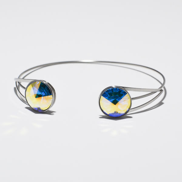 Ez a gyönyörű, swarovski, állítható karkötő remek választás Hölgyeknek! Praktikus és igazán igényes ékszer, melyben két csodálatos, színváltós kő foglal helyet!