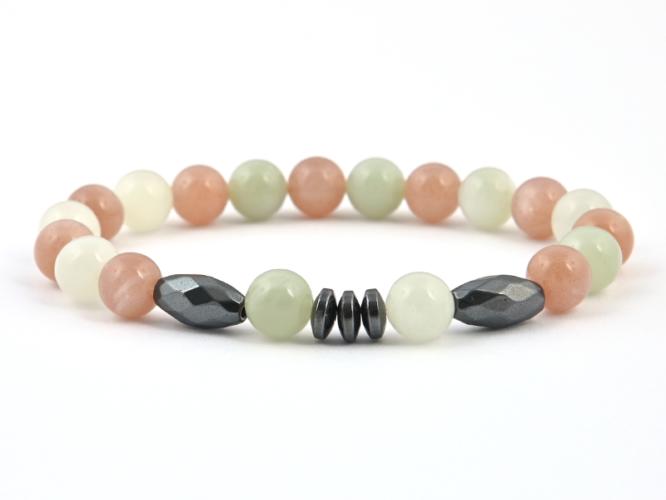 Ez az ásvány karkötő 8 mm-es jáde, "AA" minőségű 8 mm-es barna holdkő, illetve hematit tárcsa és rizsszem felhasználásával készült, duplasoros gumira fűzve. A karkötő méretének meghatározása : a csuklód pontos méretéhez adj hozzá kb. 1,5 cm-t. KÉRLEK VÁLASSZ MÉRETET ! Az ásványok nem helyettesítik az orvosi diagnózist és kezelést. A holdkő hatása : a holdkő f