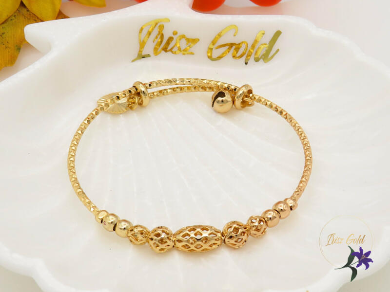 Goldfilled kisméretű állítható karperec , különböző metszett gömbökkel díszítve. Szin: 18K Méret: 15-18ig Nem szétnyitható ! Kézfej kerülete max 18 cm lehet. A forgalmazott divatékszerek alapanyaga nikkel és ólommentes ezért többnyire nem okoznak allergiás tüneteket, nyugodtan hordhatják fémérzékeny emberek is. Általában nem színezik a bőrt és más divatékszerekh