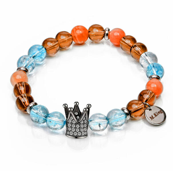 A Föld és a Nap színei jelennek meg ezen az exkluzív tervezésű topáz, füstkvarc és napkő karkötőn, az ég kékje, a Nap aranya és a Föld barnás árnyalata különleges hangulatot áraszt. Figyelem! A képen exkluzív kivitelű, rugalmas karkötő látható kapocs nélkül, de kérheted extra erős acélsodronyra is delfinkapoccsal és 5 cm hosszabbítólánccal. Ha a kapcsos verzió