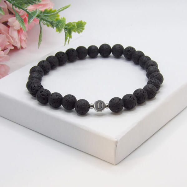 Egyedi, gondosan, szeretettel, kézzel készített karkötő fekete lávakő ásványból, (ásvány karkötő) egy db fém betűvel, monogrammal. Ajánljuk ezt a fekete színű lávakő ásványból készült unisex karkötőt mindenkinek, hiszen egyaránt mutatós férfiakon és nőkön is ez az egyszerű, mégis elegáns ásvány karkötő. A lávakő ásványból készült karkötő nem csak c