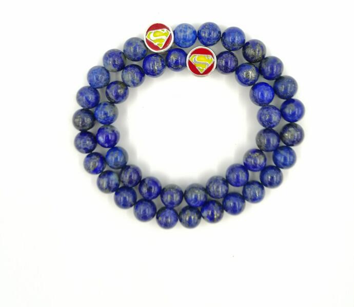 Teljesen egyedi, Apa-Fia karkötőpár, mely 8 mm kék lazurit ásványokból készült, SUPERMAN medállal. Az ár egy pár (2db) karkötőre vonatkozik. Ehhez a termékhez INGYENES KISZÁLLÍTÁST biztosítunk