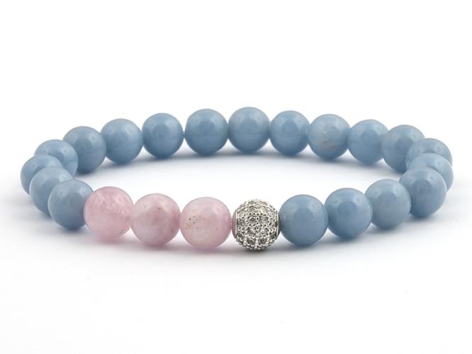 Ezt az ásvány karkötőt 8 mm-es angelitből, kunzitból és mikrostrassz gömbből készítettük el, gumira fűzve. A karkötő méretének meghatározása : a csuklód méretéhez adj hozzá kb. 1,5 cm-t. Az ásványok nem helyettesítik az orvosi diagnózist és kezelést. Az angelit hatása : az angelit segít az ideális testsúlyt elérni. Vízhajtó hatású. Ha stresszes időszakon més