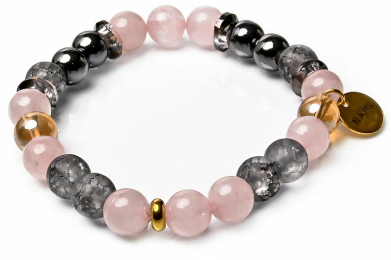 Várandós kismamákat segítő ásványokból két külön karkötőt készítettünk, amit párban ajánlunk hordásra, úgy ahogy azt a fotón is láthatod. Az egyik gumis karkötőt 8 mm-es rózsakvarc és fluorit valódi ásvány gyöngyök alkotják, a másikat jáspis és hematit ásványok. Várandós kismamákat segítő ásványok , melyek támogatják az örömteli kilenc hónapot, majd