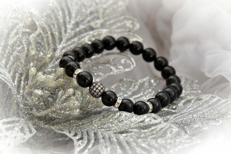 Ónix ásványgyöngyökből készült karkötő. Amit az ónixról érdemes tudnod: Az ónix általában fekete, néha előfordulhat fehér, szürkés csíkozódással is. Lelki gyógyhatása: Az ónix egy védelmező kő, amely a negatív energiák ellen véd. Csökkenti a befolyásolhatóságunkat, növelve így az önbizalmunkat, egészséges egónkat. Egyensúlyba hozza a külsőnket és bels